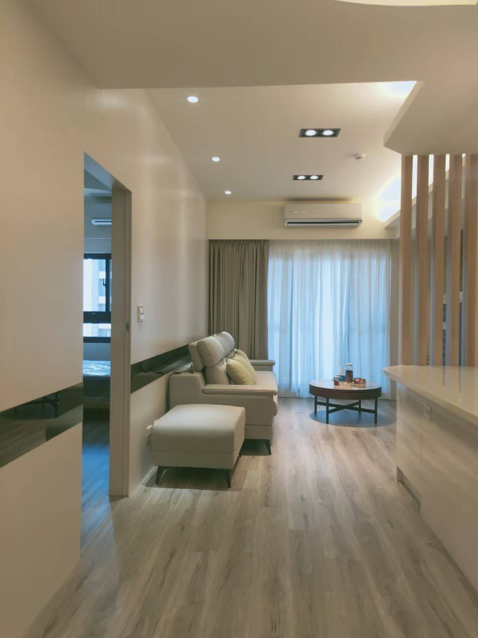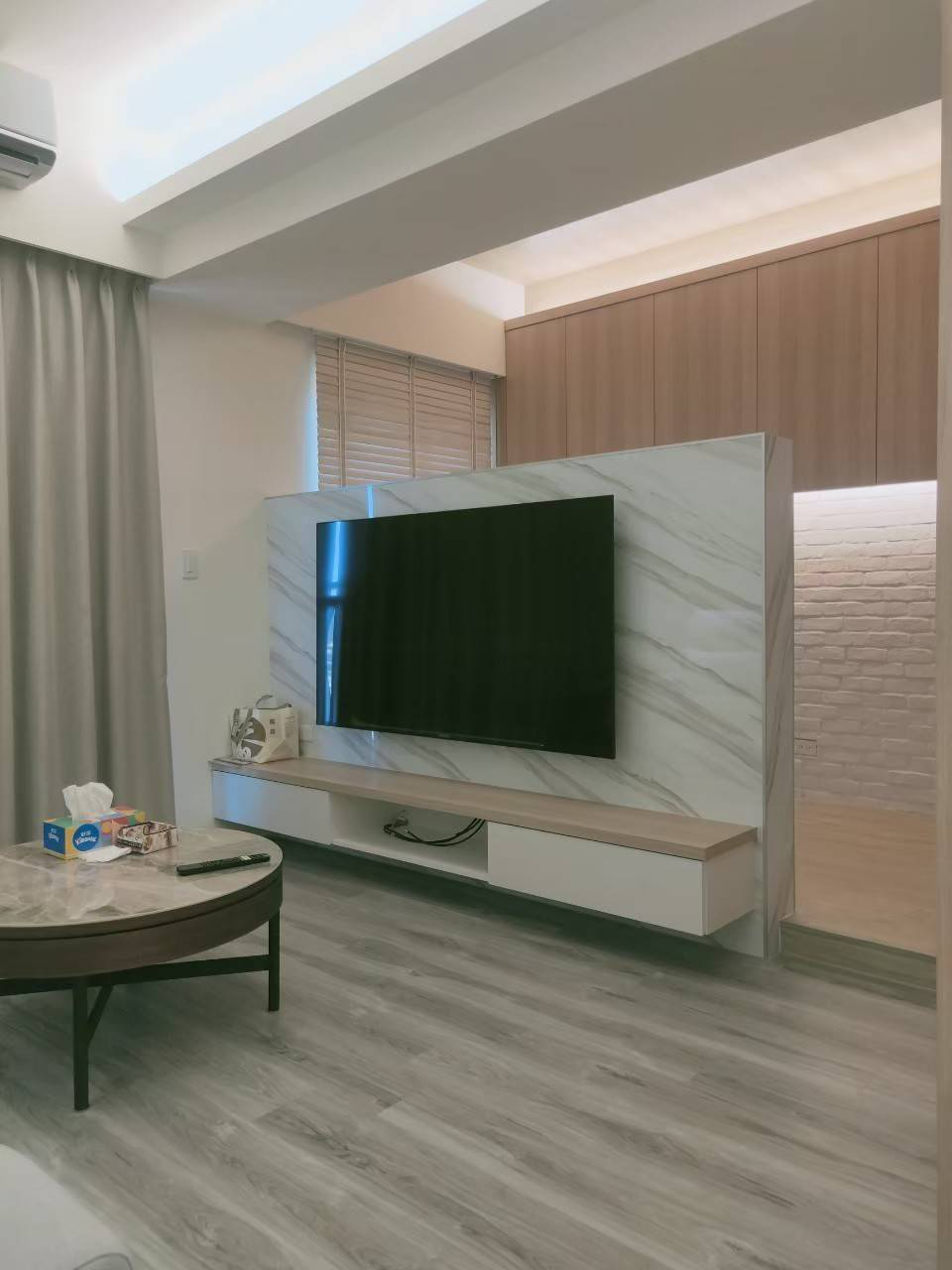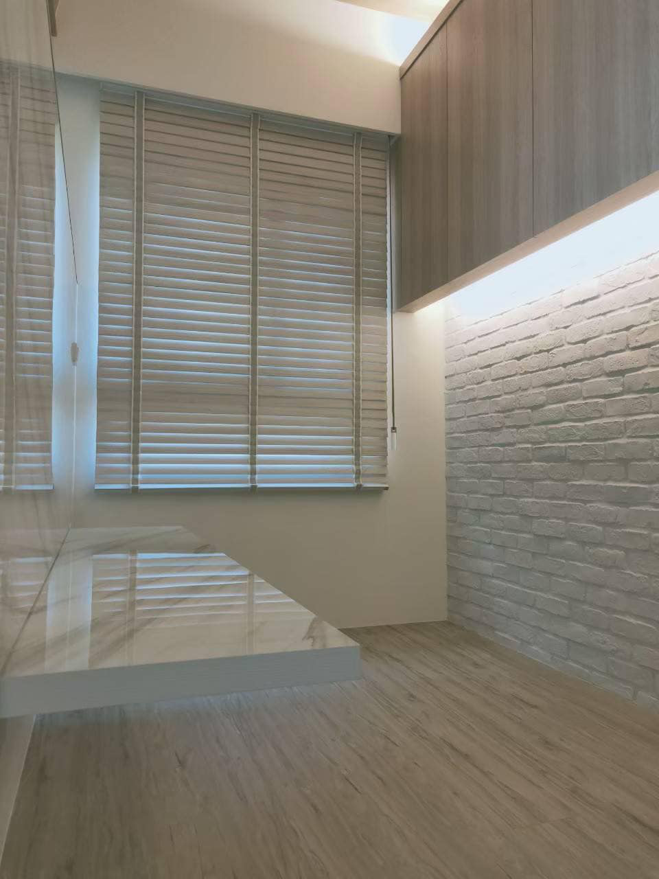 施工:純木作(天地壁及櫃體)、水電、油漆、廚具、窗簾、玻璃、地板......等