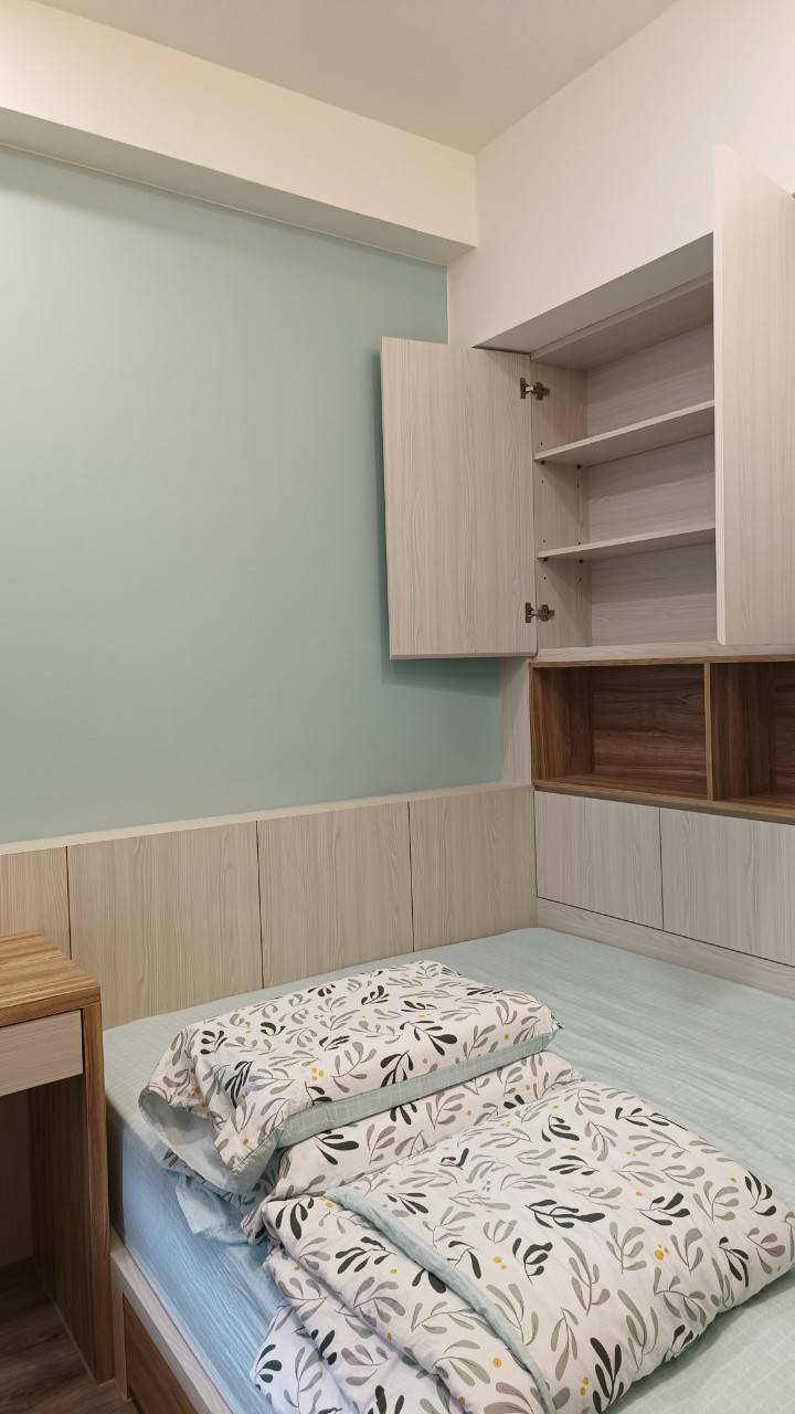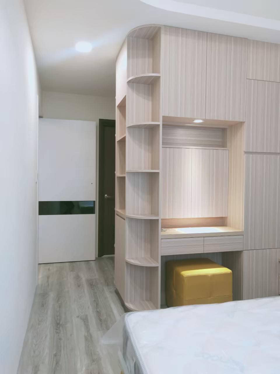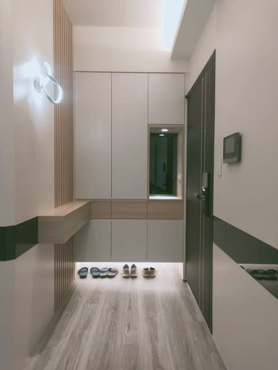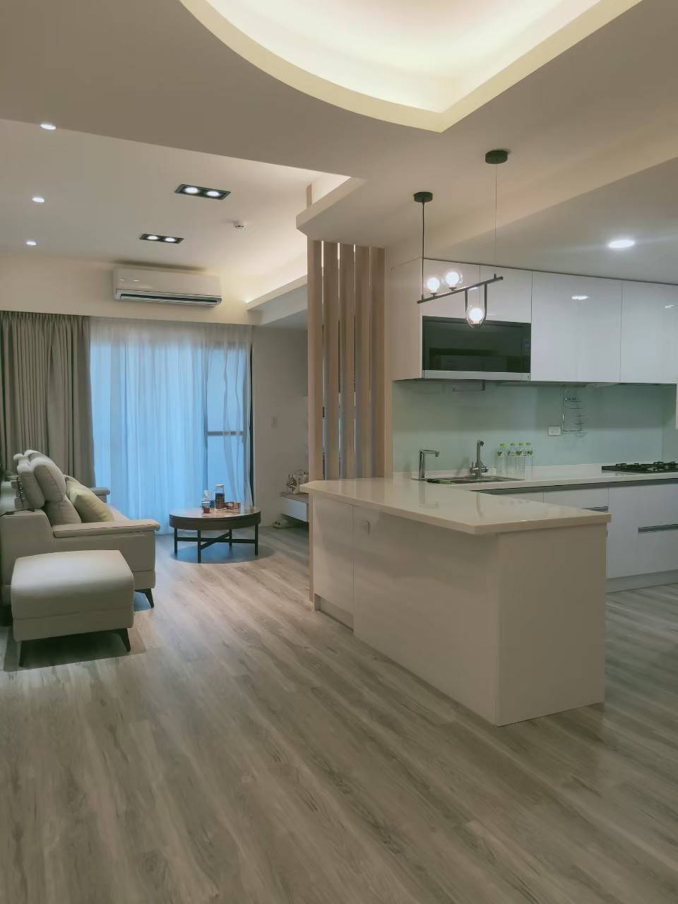 施工:純木作(天地壁及櫃體)、水電、油漆、廚具、窗簾、玻璃、地板......等