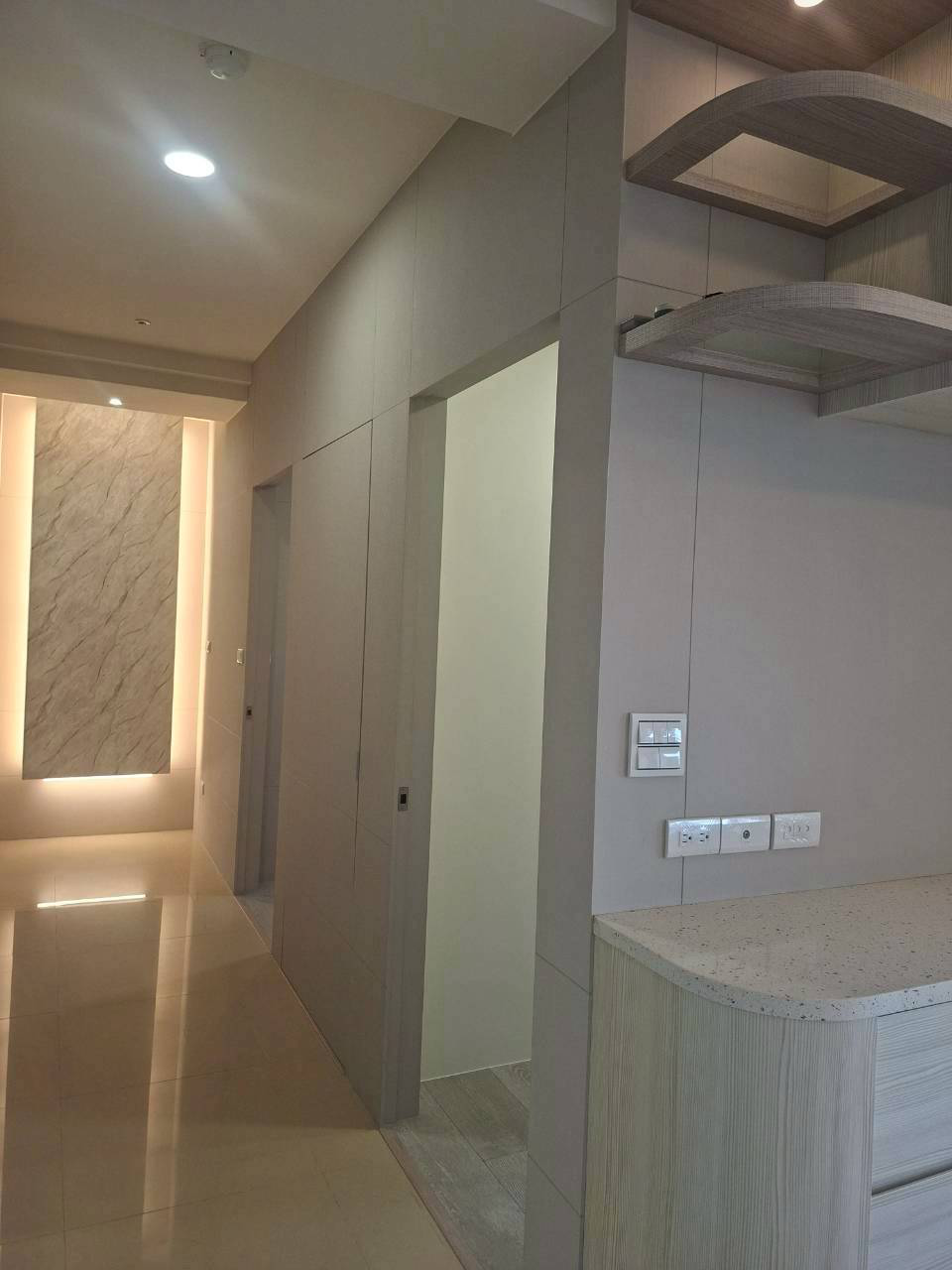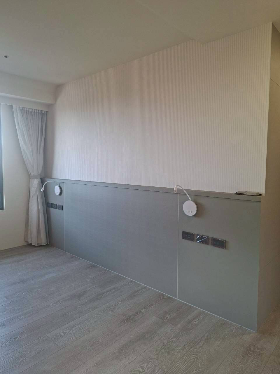 施工:純木作(天地壁及櫃體)、水電、油漆、廚具、窗簾、玻璃、地板......等