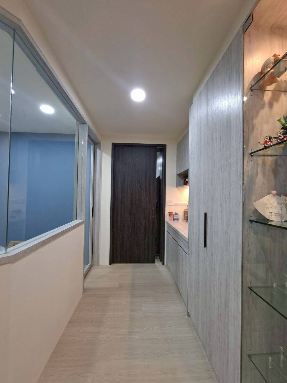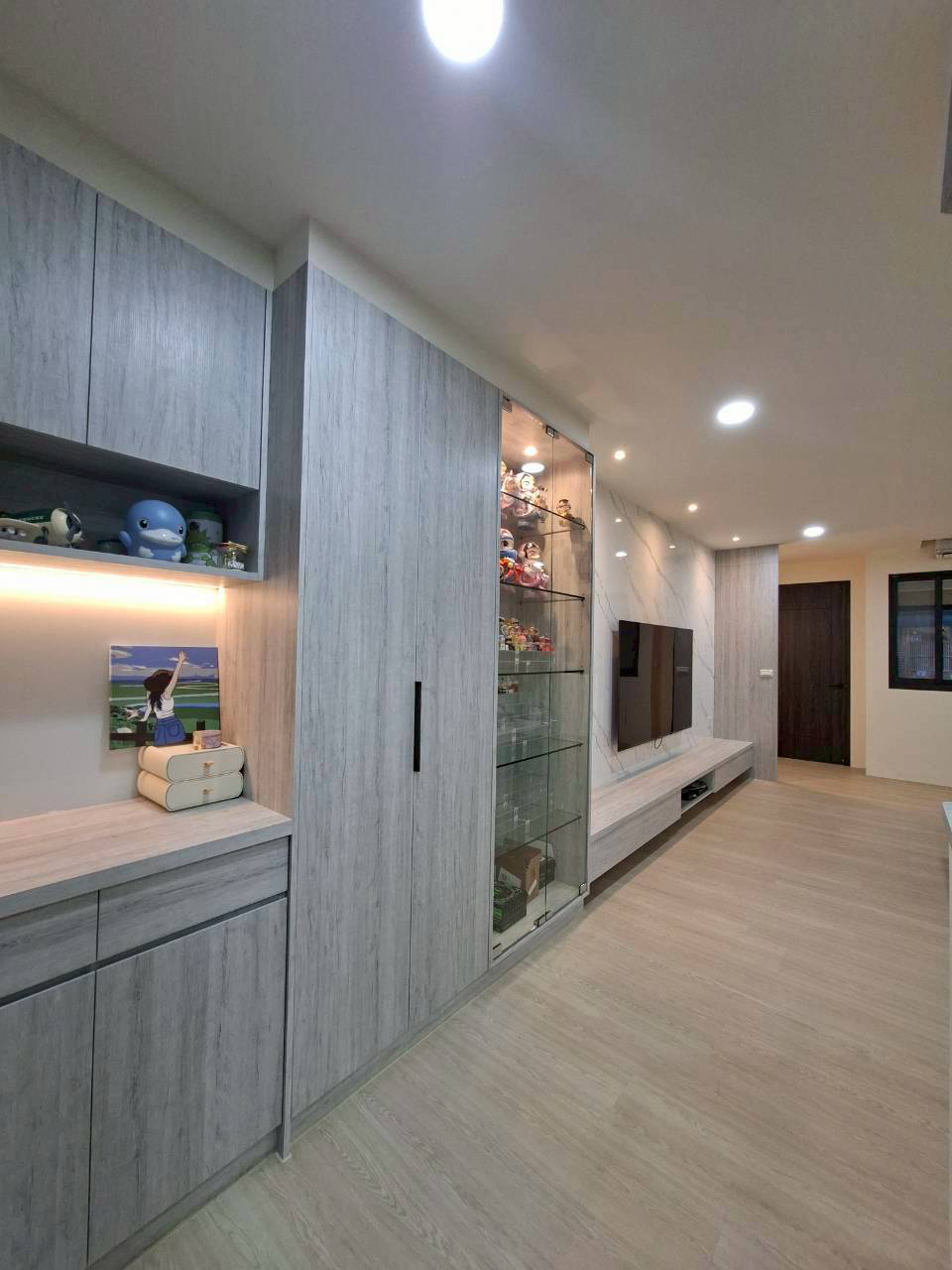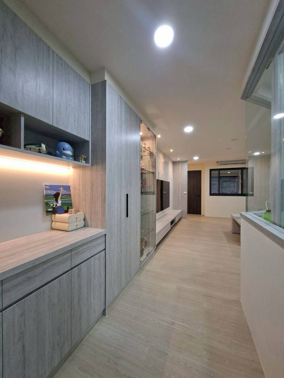 施工:純木作(天地壁及櫃體)、水電、油漆、窗簾、玻璃、地板......等