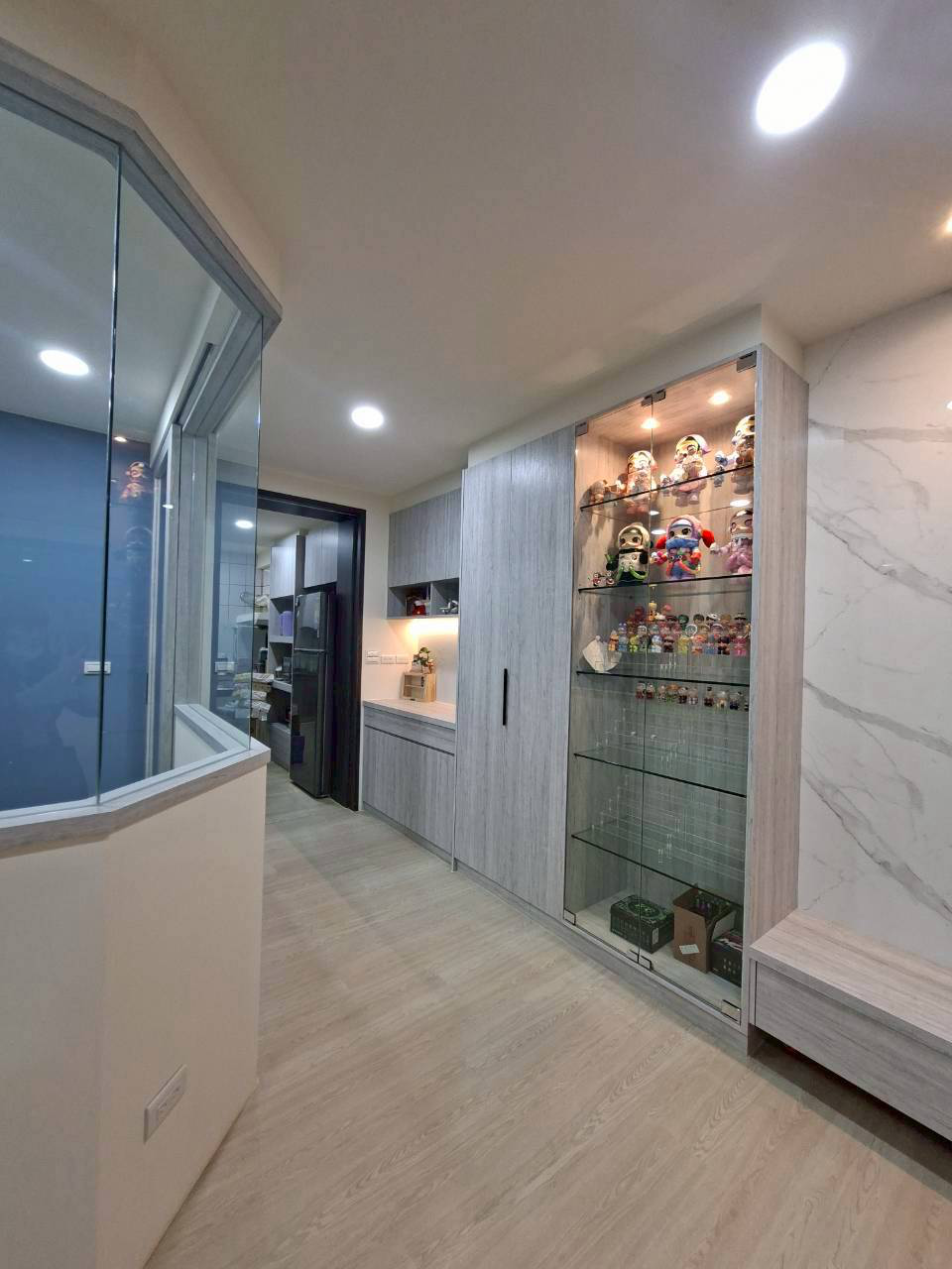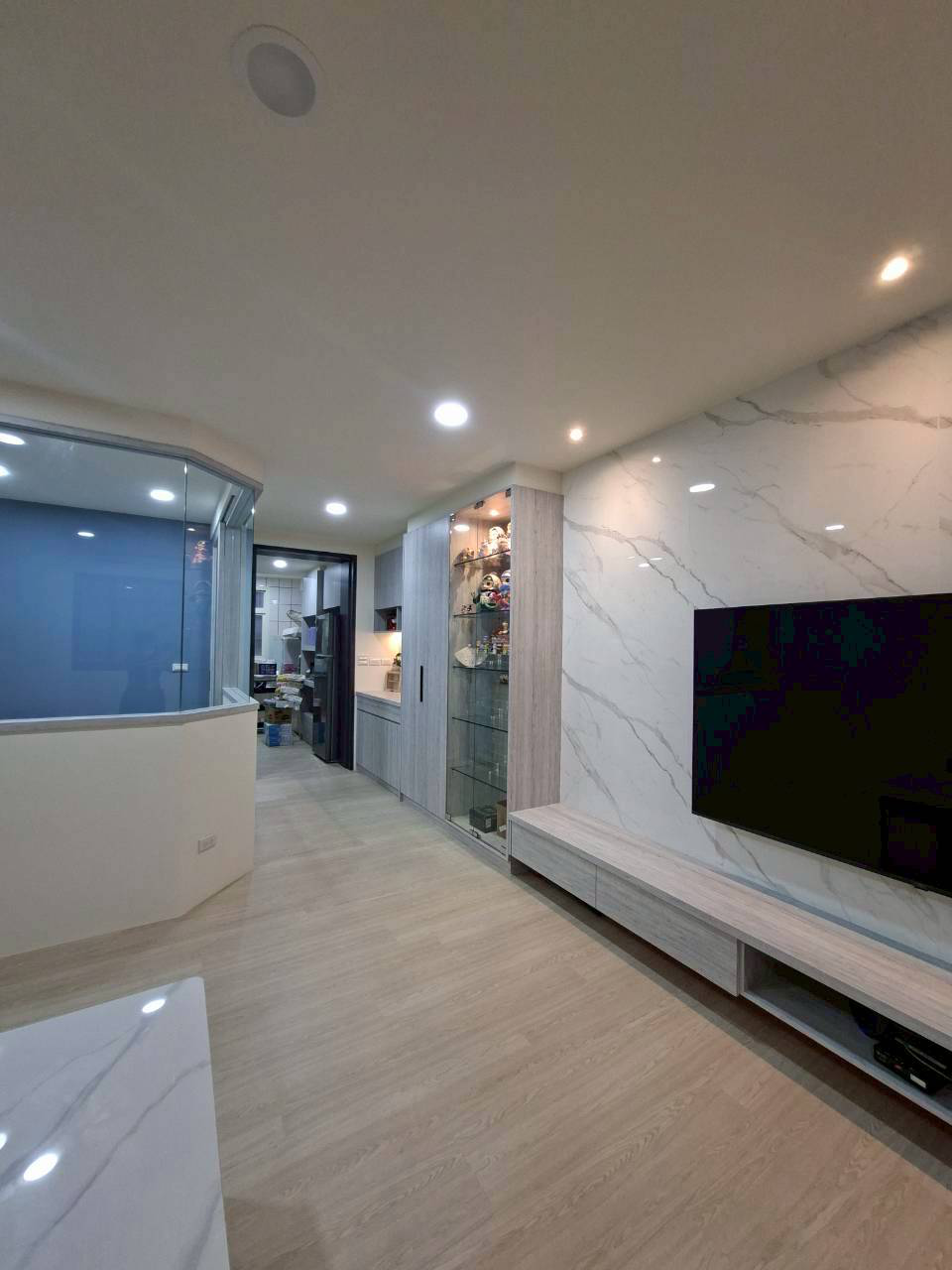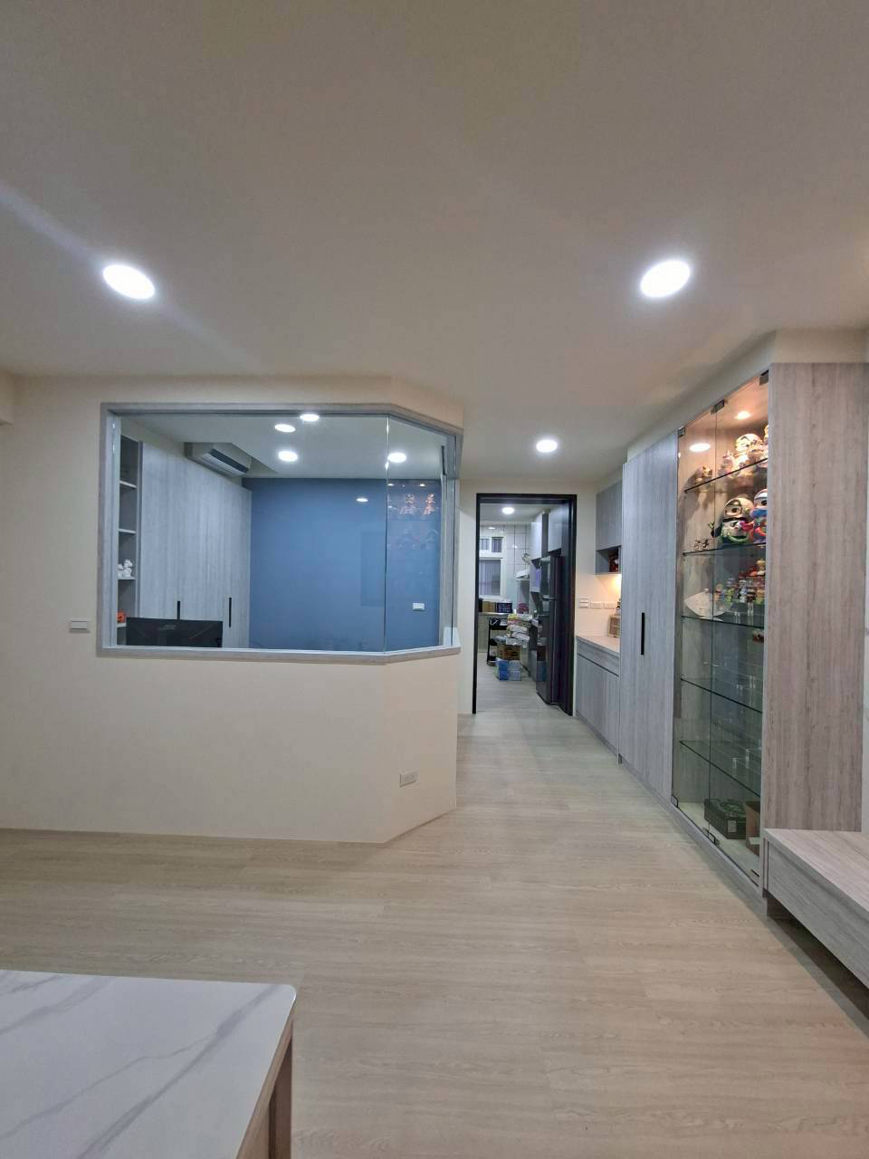 施工:純木作(天地壁及櫃體)、水電、油漆、窗簾、玻璃、地板......等